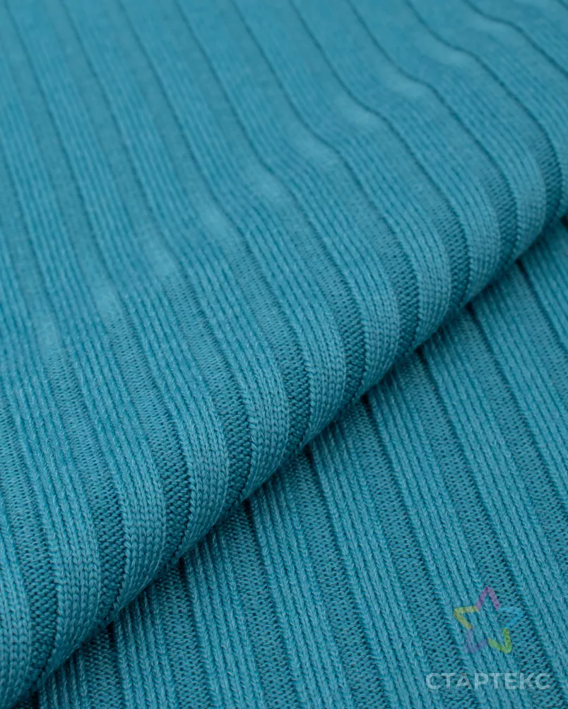 Ткань трикотаж Лапша синего цвета (океан)
