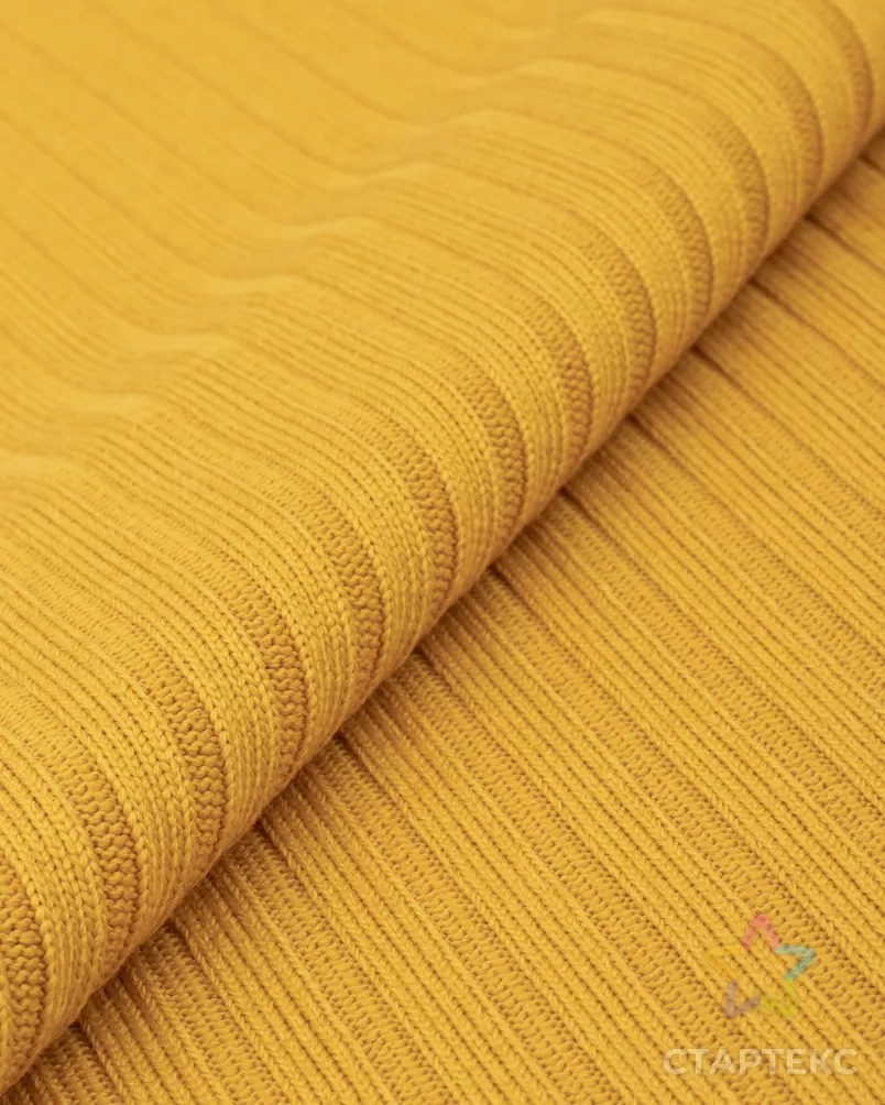Ткань трикотаж Лапша желтого цвета (горчица)