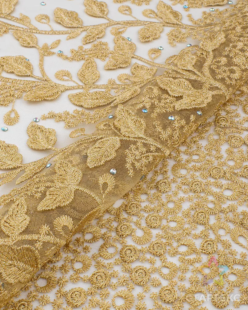 Ткань вышивка на сетке с люрексом и стразами бежевого цвета