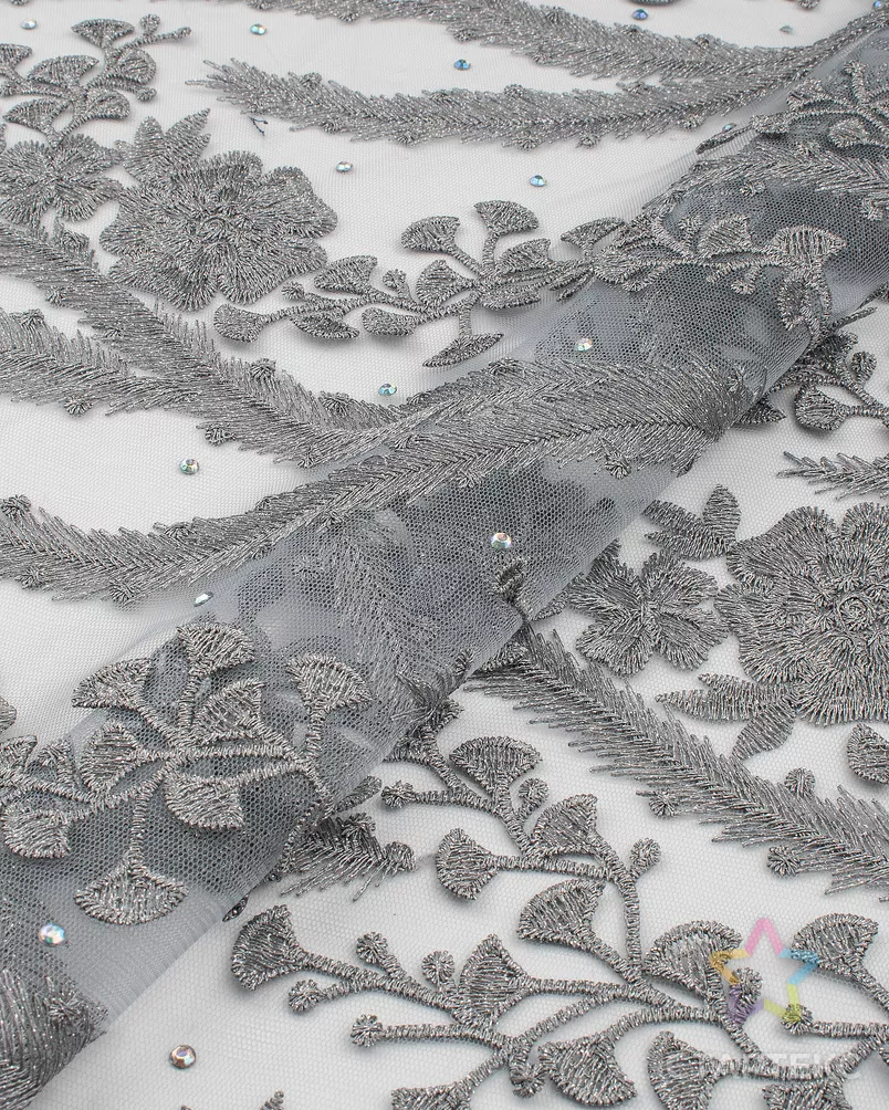 Ткань вышивка на сетке с люрексом и стразами серого цвета